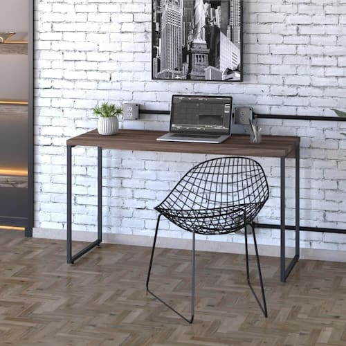 A Escrivaninha se destaca por seu estilo industrial que se inspira nas instalações de fábricas das grandes cidades. Conta com tampo em MDP, perfeita para deixar seu escritório com designer moderno e dando ainda mais personalidade ao seu espaço. Os pés são em aço. Para um ambiente moderno é necessário escolher móveis arrojados, únicos, que irão impressionar logo à primeira vista.