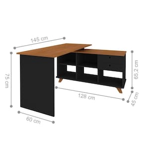 A escrivaninha é feita em MDP, pode ser montada no formato em L, podendo ser montada do lado direito ou esquerdo.