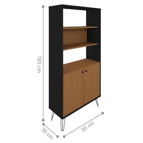 A estante é feita em MDP, contém duas portas com uma prateleira interna