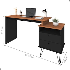 A escrivaninha é feita em MDP, possui três opções de tamanho da mesa, escolhidos durante a montagem: 135,5 cm,128,5 cm, 143,5 cm