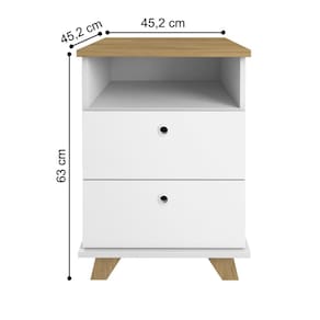 O gaveteiro é feito em MDP, contémi duas gavetas com corrediças metálicas e um nicho, facilitando a organização de objetos, celulares, livros