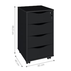 O Gaveteiro é feito em MDP, possui quatro gavetas com corrediças metálicas, facilitando a organização de celulares, livros e cadernos, contando com chave para a primeira gaveta, trazendo segurança e privacidade.