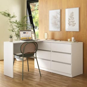 Escrivaninha em L 120cm c/ 6 Gavetas Flex Multimóveis MP6030 - Branco