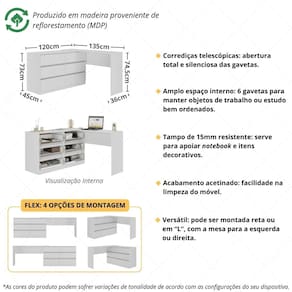 Transforme seu espaço de trabalho ou estudo em um ambiente mais produtivo, organizado e cheio de estilo com a Escrivaninha em L Flex 120cm c/ 6 Gavetas Multimóveis MP6030. Funcional e versátil, ela foi desenvolvida para atender diferentes necessidades, seja em home office, escritório ou quarto, garantindo praticidade e um visual sofisticado.