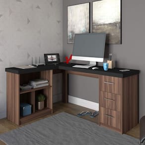 Trabalhe e estude de maneira organizada com a moderna Escrivaninha Mali. Com design versátil e estrutura flexível, este produto pode ser montado para o lado esquerdo ou direito, se adaptando ao seu espaço. O tampo em Tamburato de 50mm de espessura garante a qualidade e a robustez de móveis de alto padrão, enquanto os nichos e as gavetas são ideais para manter o local organizado, já que proporcionam amplo espaço para guardar inúmeras coisas. O amplo tampo garante muito conforto e comodidade, para você trabalhar ou estudar com muito espaço para seu computador, livros e outros materiais. O revestimento de alta qualidade proporciona resistência a impactos, atrito e umidade, certificando uma maior durabilidade ao móvel. O produto perfeito para aumentar o bem estar e a eficiência no trabalho! Acabamento da Gaveta: BP Acabamento da Prateleira: BP Acabamento dos Pés: BP Altura dos Pés: 70 cm Complexidade da Montagem: Média: pode ser montado por mais de uma pessoa e/ou necessite de maior conhecimento para montagem Cor: Ipê/Preto Cor do Produto: Ipê/Preto Cor Flex: Não Cor Interna: Preto Escala de Brilho: Fosco Escala de Brilho da Gaveta: Fosco Escala de Brilho da Prateleira: Fosco Formato: Em L Gaveta com Chave: Não Informações Complementares: Itens Inclusos: 1 Escrivaninha e Manual de Montagem. Largura Frontal: 154 cm Largura Lateral: 116,5 cm Linha ou Coleção: Mali Manual de Montagem e Instalação: https://cdn2.madeiramadeira.com.br/atributo/artany/438689-5769-5770.pdf Material da Gaveta: MDF/MDP Material da Prateleira: MDP Material do Puxador da Gaveta: PVC Material dos Pés: MDP Material Principal: MDF/MDP Montagem Flex: Sim Necessita Montagem: Sim Origem do Produto: Nacional Pés Reguláveis: Não Peso: 54 kg Peso Máximo por Gaveta: 2 kg Peso Máximo por Prateleira: 3 kg Possui Passa Cabos: Não Possui Pés: 01 Possui Porta Objetos: Não Possui Portas: Não Possui Prateleiras: 01 Possui suporte para CPU: Não Possui Suporte para Teclado: Não Quantidade de Nichos: 02 Recomendações de Uso, Manutenção e Limpeza: Limpar com pano seco ou levemente umedecido Sapatas Niveladoras: Não Sistema de Montagem: Parafusos, Minifix, Cavilhas e Pregos. Suporta Até (kg): 10 kg Tipo de Corrediça da Gaveta: Metálica Simples Tipo de Puxador da Gaveta: Externo