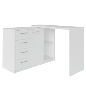 Escrivaninha Em L Com 4 Gavetas 1 Porta E Nicho London Branco Precisando de uma mesa escrivaninha para seu escritório que aproveite os cantos tendo um formato em L e que tenha amplo espaço de armazenamento e praticidade? Aqui na Casa Chick temos diversos modelos de variados tamanhos e estilos para você conferir! Não perca tempo e aproveite! Dimensões da Escrivaninha em L com 4 Gavetas 1 Porta e Nicho London: - Altura: 75,1 cm; - Largura: 100 cm; - Profundidade: 109 cm;