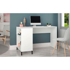 Características: Escrivaninha Marca: BRV Móveis Modelo: 78- BRV Estrutura: MDP 15mm Tipo de Acabamento: BP Produto Suporta até: 34kg Quantidade de Nichos: 02 Quantidade de Prateleiras: 01 Peso Suportado por Prateleiras: 7kg Quantidade de Pés: 02 Tipo dos Pés: Tubo 20x20 x 100 Material dos Pés: Aço Pintado