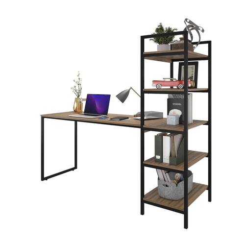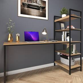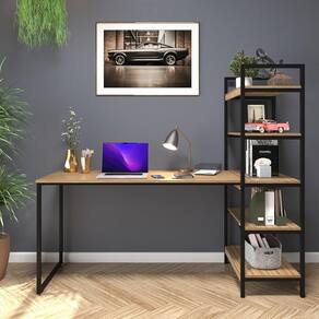 Escrivaninha Com Estante 4 Prateleiras Integradas Mesa Lamina Com Preto Estrutura: