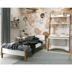 Mas o encanto verdadeiro está nos detalhes: os divisórios no compartimento da gaveta são perfeitos para organizar lápis de cor, livros e tesouros preciosos, incentivando a organização desde cedo. Além disso, a estante integrada oferece espaço para exibir os livros favoritos da criança, criando um ambiente acolhedor e inspirador para a leitura e a criatividade florescerem.