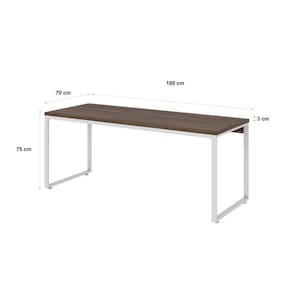 A Linha Kuadra tem seu design com inspiração no estilo industrial, que remete muito a decoração usada nos Lofts das grandes metrópoles nos anos 60 e 70. Harmonizando o metal e os tons de madeira, foram projetados móveis versáteis e com estilo, que podem compor ambientes flexíveis cheios de personalidade, perfeitos para você decorar sua casa ou seu trabalho, tendo um resultado que caminha do estilo rústico ao moderno. Acabamento dos Pés: Pintura Acompanha Manual de Instalação: Sim Ambiente Principal: Escritório Complexidade da Montagem: Baixa: pode ser montado por uma pessoa sozinha Cor: Nogal / Est.Branca Cor da Base: Branco Cor do Produto: Nogal / Est.Branca Cor do Tampo: Marrom Cor Interna: Nogal Escala de Brilho: Fosco Espessura do Tampo: 30 Formato: Retangular Itens Inclusos: 1 Mesa, Kit Ferragens e Manual de Montagem Manual de Montagem e Instalação: https://cdn2.madeiramadeira.com.br/atributo/compace-dalex/1710711-manual-novo-mesa-kuadra-180.pdf Material da Estrutura: Aço Material do Tampo: MDP Material dos Pés: Aço Material Principal: MDP Necessita Montagem: Sim Origem do Produto: Nacional Pés com Regulagem de Altura: Sim Peso: 24.83 Possui Passa Cabos: Não Possui Portas: Não Possui Prateleiras: Não Possui Suporte para Teclado: Não Recomendações de Uso, Manutenção e Limpeza: Para a limpeza, utilize flanela seca ou pano macio levemente umedecido em água. Utilize um pano seco em seguida. Evite contato com produtos químicos (solventes, thinner, acetona, etc) e não utilize nenhum tipo de esponja de aço. Sapatas Niveladoras: Sim Sistema de Montagem: Parafusos e sapatas reguláveis Suporta Até (kg): 40