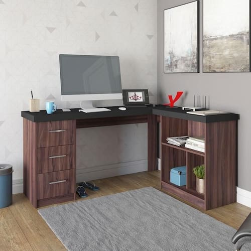 A Escrivaninha Mali, da Linha Mobile fabricada pela Artany, é a combinação perfeita do útil ao agradável. E sabe por que? Porque o seu design em L, medindo 154cm x 116,5cm de comprimento, totalizando 270 cm, é perfeito para otimizar o ambiente e ainda ganhar em espaço para trabalhar ou estudar. Além disso, as 3 gavetas com corrediças metálicas vão manter o lugar mais organizado.