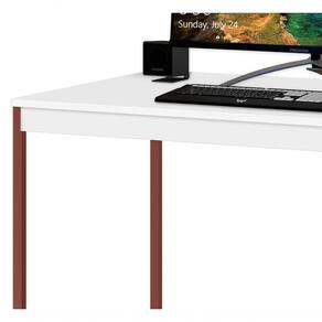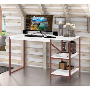 A Mesa Home Slim - MoveisAqui é o móvel ideal para seu escritório, home office ou ainda para seu cantinho de estudos no dormitório. Com um amplo tampo é perfeita para uma boa distribuição dos itens necessários no dia-a-dia, além de possuir um design industrial com a sua sustentação em cobre e duas prateleiras que ajudam na organização.