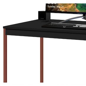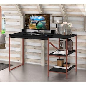 A Mesa Home Slim - MoveisAqui é o móvel ideal para seu escritório, home office ou ainda para seu cantinho de estudos no dormitório. Com um amplo tampo é perfeita para uma boa distribuição dos itens necessários no dia-a-dia, além de possuir um design industrial com a sua sustentação em cobre e duas prateleiras que ajudam na organização.