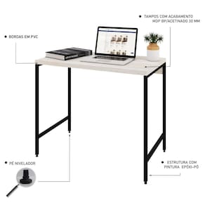 A Mesa Active ACME590 é um produto prático e versátil, que pode ser utilizado em diversos ambientes, como quarto, escritório ou na sala, A Linha Active reúne design minimalista e praticidade, traços retos e móveis versáteis são as características dessa coleção, As estruturas metálicas possuem pintura Epóxi e sapatas niveladoras e, nos tampos, MDP BP Acetinado com fitas de borda em PVC,