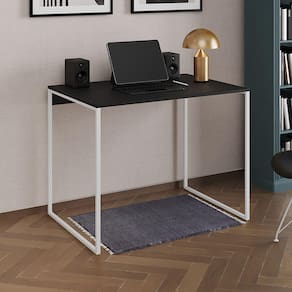 Escrivaninha Industrial Office Preta 90x53 Grécia Base Ferro Branco - Preto