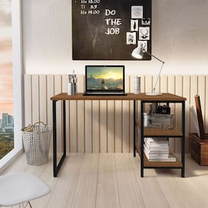 Escrivaninha Industrial Office Star 120cm 2 Prateleiras KLM Móveis - Marrom Escuro