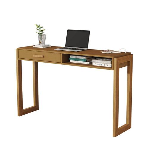 Seu tampo amplo permite acomodar notebooks, livros e materiais de trabalho com conforto, enquanto o nicho inferior oferece espaço extra para objetos de apoio, garantindo organização no dia a dia.