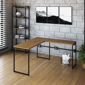 Escrivaninha L Estilo Industrial 150x140cm Dynamica Yescasa Lamina Mel / Preto - Marrom
