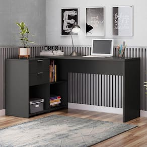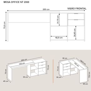 A Escrivaninha Mesa Computador Preta Reta ou em L 2 Gavetas Top NT2060 Notável 75x200x45 é um móvel completo que vai te auxiliar nas atividades do home office ou estudos. Com ela, você tem diversas possibilidades de montagem: de canto, montada reta, com o nicho para o lado direito ou esquerdo e você também pode escolher em que lado colocar as gavetas! O tampo de 25 mm é super espaçoso para você organizar itens essenciais ao dia a dia, e as gavetas possuem corrediças metálicas para guardar documentos e demais objetos. Um móvel moderno que vai atender as suas necessidades!