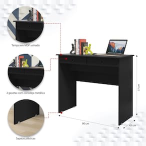 Escrivaninha Mesa de Computador 4020 2 Gavetas Preto EJ Móveis