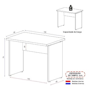 Conteúdo da Embalagem: 1 (uma) Escrivaninha Manual de Montagem Kit Ferragem