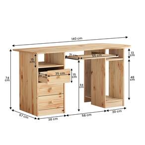 Com 140 cm de largura, oferece generosa área de trabalho para computador, livros e acessórios, enquanto a bandeja retrátil para teclado mantém o tampo livre, garantindo postura confortável e ergonômica.