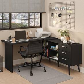 Seu acabamento na cor preta traz um visual moderno e sofisticado, ideal tanto para escritórios profissionais quanto para cantinhos de home office ou estudo. A estrutura é fabricada com materiais de alta qualidade, garantindo resistência, durabilidade e estabilidade no uso diário.