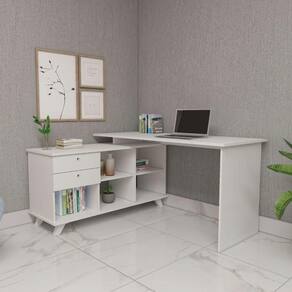 Escrivaninha Mesa em L Escritório com Gavetas e Nichos Gold Branco - Mesa em L Home Office com Gavetas e Nichos Gold