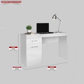 Escrivaninha com 01 porta, e 01 gaveta, ótimo móvel para trabalho ou estudo, moderna, clean, multifuncional, serve para ocupar um espaço no seu quarto ou num escritório, espaço com porta para organizar melhor seus pertences.. Produto Montado: Sim Acompanha Manual de Instalação: Sim Ambiente Principal: Escritório codigo_ean: 7895183043905 Complexidade da Montagem: Baixa: pode ser montado por uma pessoa sozinha Cor da Base: Branco Cor do Produto: Branco Cor do Tampo: Branco Cor Flex: Não Cor Interna: Branco Dobrável: Não Espessura do Tampo: 15 mm Formato: Retangular Gaveta com Chave: Não Linha: Vitória Linha ou Coleção: Vitória Manual de Montagem e Instalação: https://product-hub-prd.madeiramadeira.com.br/526410/documents/f9693bbc-4df5-4e0d-bd0f-d2937be2452enha01portavitoriadetalhado.pdf Material Principal: MDP Modelo Infantil: Não Montagem Flex: Não, só é possível a montagem do produto conforme imagem do anúncio. Necessita Montagem: Sim Pés Reguláveis: Não Peso: 22,4 kg Posição da Gaveta: Lateral Possui Acabamento na Parte de Trás: Não Possui Borda Arredondada: Não Possui Espelhos: Não Possui Passa Cabos: Não Possui Pés: Não Possui Porta Objetos: Não Possui Portas: Sim Possui Prateleiras: Não Possui suporte para CPU: Não Possui Suporte para Teclado: Não Possui Vidro: Não Quantidade de Gavetas: 01 Gaveta Quantidade de Nichos: Não Recomendações de Uso, Manutenção e Limpeza: Limpar com uma flanela seca. Sistema de Montagem: cavilha e parafuso Suporta Até (kg): 20 kg