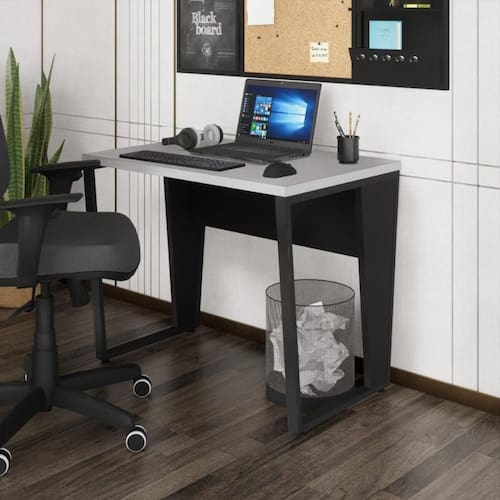 Escrivaninha Mesa Escritório 90cm Multimóveis Cr25326 Cinza Preto Com design moderno e estrutura funcional, a Escrivaninha Mesa Escritório 90cm Multimóveis CR25326 é perfeita para quem busca um ambiente organizado e cheio de estilo. Ideal para o home office ou escritório corporativo, esta mesa une praticidade, elegância e durabilidade para acompanhar sua rotina com eficiência e bom gosto. Diferenciais: - Produzida em MDP proveniente de reflorestamento: resistente, durável e ecologicamente correta. - Acabamento em BP: superfície sofisticada e fácil de limpar. - Tampo de 30mm: suporta até 25kg para apoiar materiais de trabalho e eletrônicos. - Pés metálicos em formato de trapézio: design moderno que traz requinte ao ambiente. - Sapatas niveladoras: protegem o móvel, evitando o atrito com o chão.