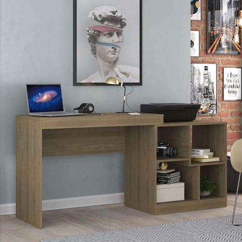 A moderna escrivaninha referência HO-2904 tem como marca registrada seu delicado acabamento e versatilidade, permitindo uma montagem em dois modos diferentes, tanto em ângulo reto e servindo também como módulo de canto, ficando à critério de escolha a melhor opção para seu ambiente. Acabamento da Gaveta: Acabamento da Porta: Acabamento da Prateleira: Acabamento dos Pés: Altura dos Pés: Ambiente Principal: Escritório Complexidade da Montagem: Baixa: pode ser montado por uma pessoa sozinha Cor: Avelã Tx Cor da Base: Marrom Cor do Produto: Avelã Tx Cor do Tampo: Marrom Cor Flex: Não Cor Interna: Avelã Escala de Brilho: Fosco Escala de Brilho da Gaveta: Escala de Brilho da Porta: Escala de Brilho da Prateleira: Formato: Retangular Gaveta com Chave: Informações Complementares: Itens Inclusos: 1 Escrivaninha, Kit Ferragens e Manual de Montagem. Largura Frontal: Largura Lateral: Linha ou Coleção: Home Office Manual de Especificação Técnica: Manual de Montagem e Instalação: https://cdn2.madeiramadeira.com.br/atributo/hecol-moveis/1067389-manual-de-montagem-ho-2904.pdf Material da Gaveta: Material da Porta: Material da Prateleira: Material do Puxador da Gaveta: Material do Puxador da Porta: Material dos Pés: Material Principal: MDP Montagem Flex: Não Necessita Montagem: Sim Origem do Produto: Nacional Pés com Regulagem de Altura: Pés Reguláveis: Peso: 30 Peso Máximo por Gaveta: Peso Máximo por Prateleira: Possui Passa Cabos: Não Possui Pés: Não Possui Porta Objetos: Sim Possui Portas: Não Possui Prateleiras: Não Possui suporte para CPU: Não Possui Suporte para Teclado: Não Quantidade de Nichos: Recomendações de Uso, Manutenção e Limpeza: Para limpeza utilizar pano seco Rodízio com Trava: Sapatas Niveladoras: Sim Sistema de Montagem: Parafusos e Cavilhas Suporta Até (kg): 15 Tipo de Corrediça da Gaveta: Tipo de Dobradiça/Corrediça da Porta: Tipo de Madeira Maciça: Tipo de Madeira Maciça da Gaveta: Tipo de Madeira Maciça da Porta: Tipo de Madeira Maciça da Prateleira: Tipo de Madeira Maciça do Puxador da Gaveta: Tipo de Madeira Maciça do Puxador da Porta: Tipo de Madeira Maciça dos Pés: Tipo de Puxador da Gaveta: Tipo de Puxador da Porta: