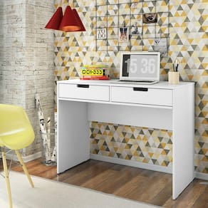 Esta é uma escrivaninha com praticidade e funcionalidade, ótima para trabalhar com notebook, contém duas gavetas de mdf com puxadores usinados, para guardar objetos e o diferencial dela é um compartimento com uma porta de mdf e puxadores usinados que existe no tampo superior onde poderá guardar também objetos. É uma escrivaninha, moderna, prática e útil. Os produtos da Olivar Móveis não servem apenas para preencher os espaços da sua casa, mas sim para transformar em um lugar aconchegante, atraente e com um design moderno, sem abrir mão da qualidade