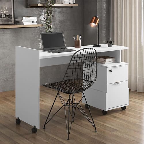 Escrivaninha, Office, Alessa M1, Mesa Escritório, MDF, Rodízios, Gavetas, Chave, Puxadores Cromados, Pintura UV, Estilo, Modernidade, Funcionalidade, Durabilidade, Montagem, Móveis