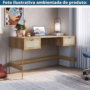 Produto: Escrivaninha Oslo Artesano 139 cm (largura) em MDP Palha Cor Mel Base Metal | Cor: Mel | Materiais: MDP, Metal | Tonalidade: Marrom | Estilo de Decoração: Urbano Contemporâneo | Cômodo Indicado: Escritorio | Linha: Oslo | Montagem: Desmontado | Marca: Artesano | Peso Suportado (kg): 19.00 | Área de : Interna | Garantia (tempo): 6 meses | Garantia (descritivo): Garantia contra defeitos de fabricação de 06 meses. Consulte as s políticas. | Peso (kg): 23.00 | Medidas: Largura (cm): 139.00 | Medidas: Profundidade (cm): 60.00 | Medidas: Altura (cm): 76.50 | Entregue Montado?: Não | Possui Manual de Montagem?: Acompanha o Produto | Origem do Produto: Nacional | Conservação e Manutenção: Limpeza com pano úmido em solução de água e detergente neutro. Secar em seguida. | Acabamento: Fosco | Número de Gavetas: 2 gavetas | Atributos: Elegante, Durável, Rústico, Resistente