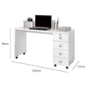 Praticidade: Os rodízios facilitam a movimentação da escrivaninha, permitindo reorganizar o espaço conforme necessário.