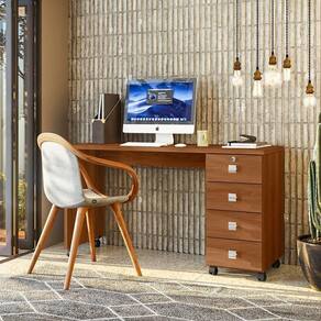 Organização e : As 4 gavetas, incluindo uma com chave, permitem o armazenamento de documentos e objetos Moderno: O acabamento em amêndoa e os puxadores cromados conferem um visual contemporâneo e elegante ao seu escritório.Durabilidade: Produzida com materiais de alta qualidade, a escrivaninha é robusta e ideal para uso diário.Praticidade: Os rodízios facilitam a movimentação da escrivaninha, permitindo reorganizar o espaço conforme necessário.Observações Importantes
