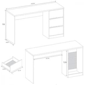 - Possui 3 gavetas