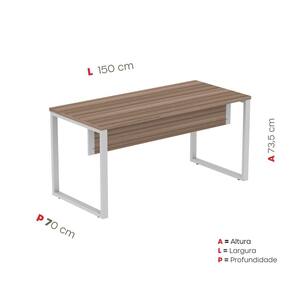 Escrivaninha para Escritório 73,5cm x 150cm m150/70P25TUB Mesa com pés Tubular com tampo de 25cm de espessura com borda 1cm. A mesa para escritório consegue combinar facilmente com outras mobílias sem atrapalhar a decoração. Ela oferece espaço para você e deixa o seu local de trabalho muito mais organizado e elegante. É ideal para desempenhar tarefas diárias de trabalho, acomoda inúmeras objetivos que você desejar, produzida em estrutura MDP que a deixa mais resistente e mais segura para você. Produto Montado: Sim Acompanha Manual de Instalação: Sim Ambiente Principal: Escritório codigo_ean: 7900288159663 Complexidade da Montagem: Baixa: pode ser montado por uma pessoa sozinha Cor: Walnut/Cinza Cor da Base: Cinza Cor do Produto: Walnut/Cinza Cor do Tampo: Marrom Cor Flex: Não Cor Interna: Walnut/Cinza Dobrável: Não Escala de Brilho: Semi-Fosco Espessura do Tampo: 25 mm Formato: Retangular Itens Inclusos: 1 Escrivaninha, Manual de Montagem e Kit Ferragens Linha ou Coleção: P25 Manual de Montagem e Instalação: https://product-hub-prd.madeiramadeira.com.br/248300509/documents/b8920ac6-29bc-4861-9df2-080a3d809ad9a1862802Mesa20PE4020e20P25.pdf Marca: Pandin Móveis Material da Estrutura: Aço Material do Tampo: MDP Material dos Pés: Polipropileno Material Principal: MDP Modelo Infantil: Não Montagem Flex: Não Necessita Montagem: Sim Origem do Produto: Nacional Peso: 33,3133 kg Possui Acabamento na Parte de Trás: Sim Possui Borda Arredondada: Sim Possui Caixa de Tomada: Não Possui Espelhos: Não Possui Estante: Não Possui Gaveta para Pasta Suspensa: Não Possui Gaveteiro: Não Possui Passa Cabos: Não Possui Porta Objetos: Não Possui Portas: Não Possui Prateleiras: Não Possui Suporte para Teclado: Não Possui Vidro: Não Recomendações de Uso, Manutenção e Limpeza: Utilize pano úmido com para limpeza Sapatas Niveladoras: Sim Sistema de Montagem: Parafuso Suporta Até (kg): 60 kg Marca: Não Informado