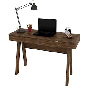 Escrivaninha Para Escritório Cavalete 2 Gavetas Nogal A Escrivaninha Cavalete une um design contemporâneo com a praticidade que seu escritório precisa. Sua estrutura em MDP de alta qualidade e acabamento em BP garante durabilidade, resistência e um visual sofisticado para qualquer ambiente. Dimensões da Escrivaninha para Escritório Cavalete 2 Gavetas: - Altura: 75,5 cm - Largura: 120 cm - Profundidade: 45 cm