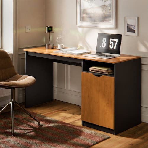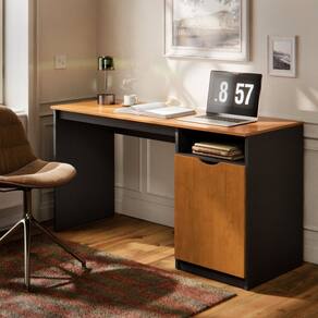 Escrivaninha para Escritório com 1 Porta e Nicho Lateral 115cm Maxi Preto/Marrom