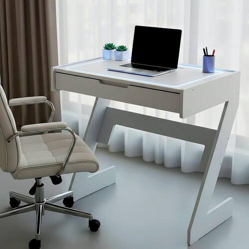 Escrivaninha para Escritório com Luz Neon Branco. Transforme seu espaço de trabalho com a nossa moderna escrivaninha com LED NEON AZUL embutido, onde design, funcionalidade e estilo se encontram! Com linhas arrojadas e estrutura robusta, ela é perfeita para quem busca um ambiente organizado, sofisticado e produtivo. O destaque fica por conta da iluminação LED integrada à mesa, que oferece uma atmosfera elegante e agradável para estudar ou trabalhar, mesmo em ambientes com pouca luz. A gaveta embutida proporciona praticidade para guardar itens essenciais, mantendo o tampo sempre livre e clean. Ideal para escritórios, home office ou quartos modernos. Profissionalismo e bom gosto em um só móvel!