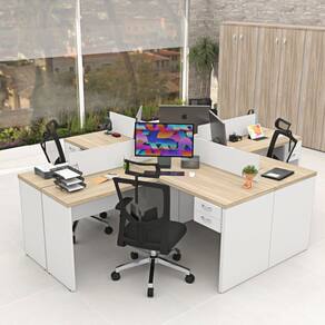 Invista no seu bem-estar e na sua equipe com a Ilha em L com gaveta da Linha Office Netmobil!