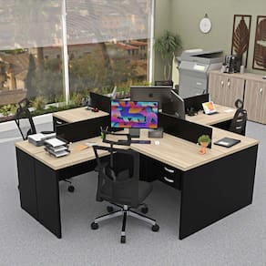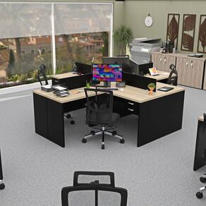 Invista no seu bem-estar e na sua equipe com a Ilha em L com gaveta da Linha Office Netmobil!