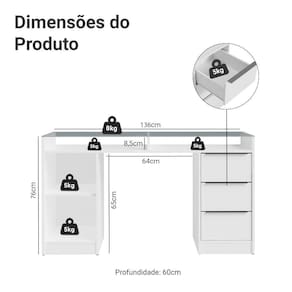 Perfeita para usar tanto como escrivaninha quanto como penteadeira. Conta com 1 porta, 3 gavetas e 2 nichos abaixo do tampo, oferecendo organização para o que você precisar.