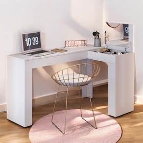 Transforme seu quarto em um verdadeiro refúgio de beleza e organização! Nossa escrivaninha multifuncional é a peça-chave que você precisa para criar um ambiente elegante e funcional. Com espelho, porta-joias e diversos compartimentos, ela oferece tudo o que você precisa para cuidar de si mesma e deixar seus pertences sempre à mão. Não perca essa oportunidade e garanta já a sua!