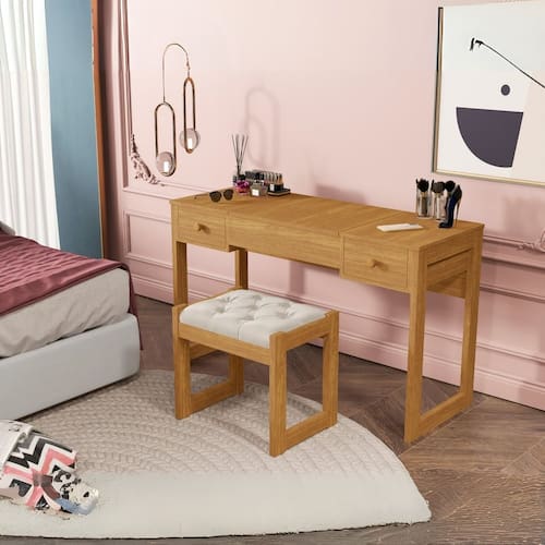 Adicione beleza, conforto e praticidade ao seu ambiente com a Penteadeira Luanda com banqueta e espelho – perfeita para o seu dia a dia! IMAGENS MERAMENTE ILUSTRATIVA!