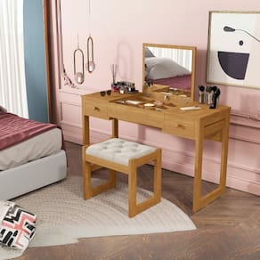 Renove seu quarto com a elegante penteadeira escrivaninha com espelho Luanda, ideal para quem busca funcionalidade e charme no mesmo móvel. Produzida em 100% MDF, possui acabamento acetinado, que traz leveza e sofisticação ao ambiente. Acompanha uma banqueta confortável com assento revestido em tecido sued bege, perfeita para sua rotina de cuidados ou para uso como mesa de estudos. Seja para maquiagem, home office ou organização pessoal, essa penteadeira é uma escolha prática e estilosa.