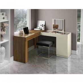 Escrivaninha Penteadeira De Canto 3003023, ideal para quem busca modernidade e sofisticação ao ambiente. Estrutura em MDP de 15mm, pintura com revestimento Mob Print (Fosco/Brilho). Composta por uma porta com dobradiças metálicas, prateleira interna, painel fixo com espelho quadrado, vidros deslizantes, nicho divisor organizacional para objetos e maquiagens, e acompanham sapatas plásticas. Perfeita para organizar suas maquiagens ou outros produtos proporcionando praticidade e conforto. Este móvel chegará na sua casa separado em 01 volume.