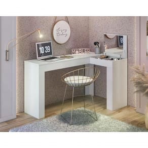 Escrivaninha Penteadeira De Canto 3003029, ideal para quem busca modernidade e sofisticação ao ambiente. Estrutura em MDP de 15mm, pintura com revestimento Mob Print (Fosco). Composta por porta basculante com pistão a gás e dobradiças metálicas, painel com espelho quadrado, nicho divisor organizacional para objetos e maquiagens, e acompanham sapatas plásticas. Perfeita para organizar suas maquiagens ou outros produtos proporcionando praticidade e conforto. Este móvel chegará na sua casa separado em 01 volume.