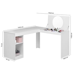 A Escrivaninha de canto com penteadeira Princesa Peach possui dupla funcionalidade, podendo ser utilizada tanto para facilitar a organização de seus pertences de maquiagem e beleza, como para proporcionar um espaço de trabalho ou estudo.